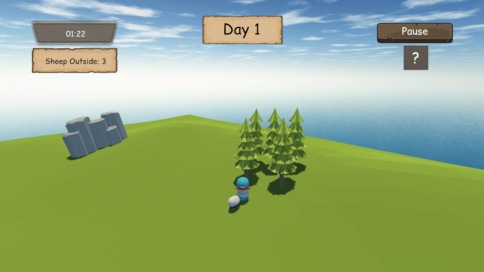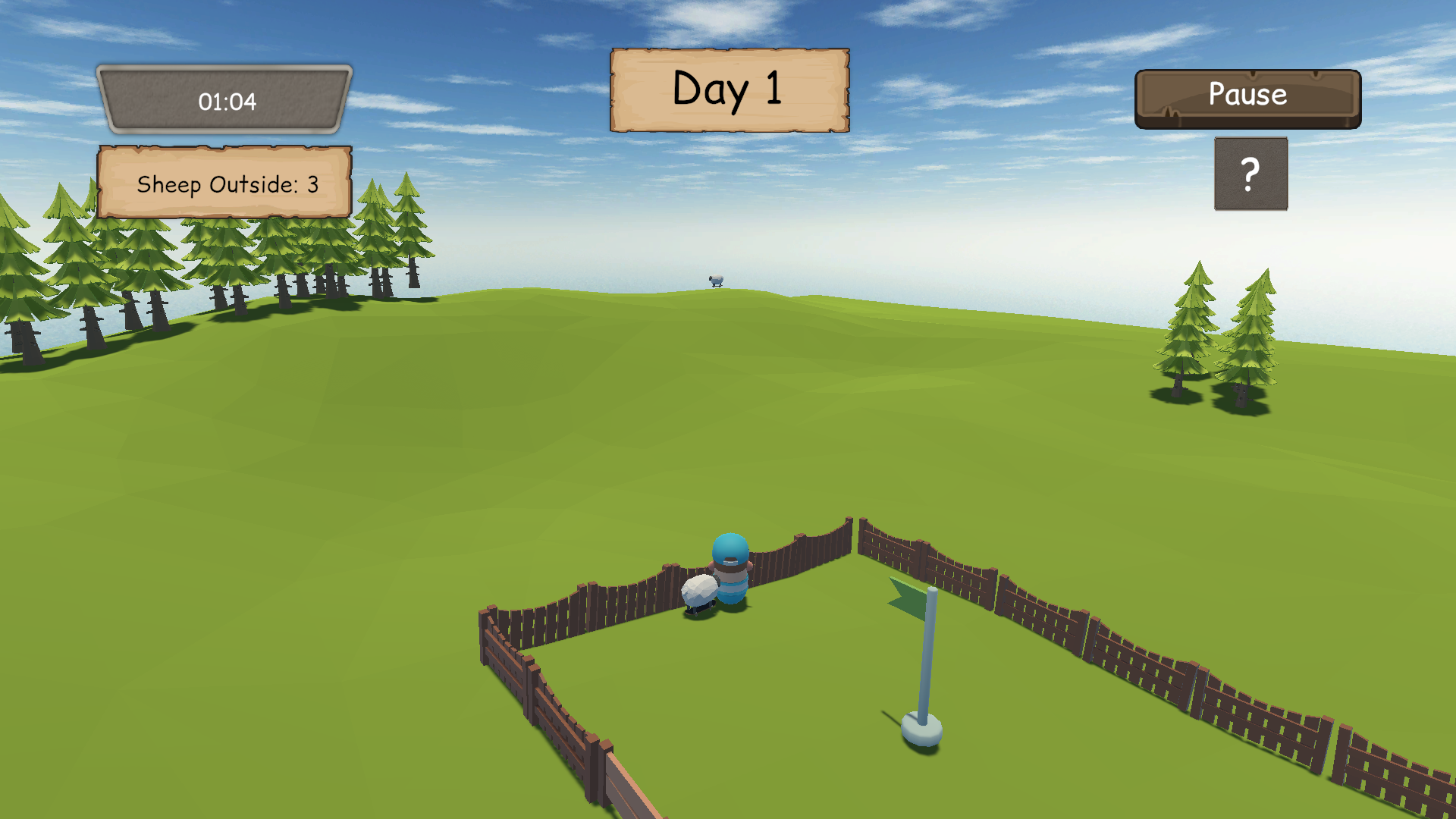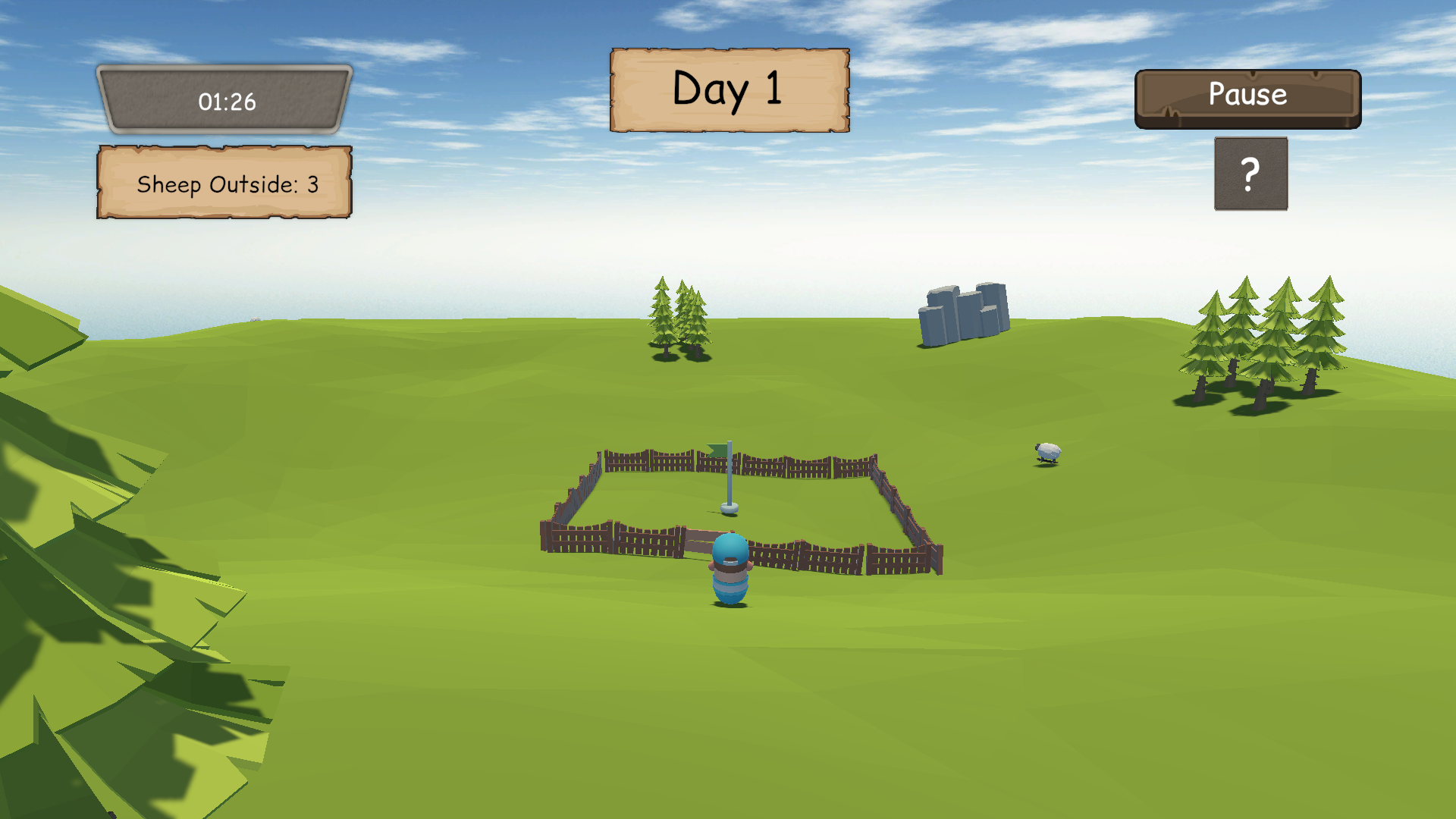 Once upon a time, there was a shepherd named Leo. Every day he took care of his sheep in the wide green fields. But Leo had a big problem. His sheep always got lost. Whenever it was time to go back to the sheep pen, the sheep ran in different directions. Some went behind the trees. Some walked near the river. Others simply wandered away. His everyday task is to guide the sheep to the sheep pen before timer runs out.